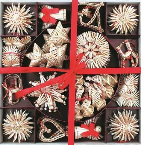 Slaměné dekorace v dřevěné krabičce 56 ks