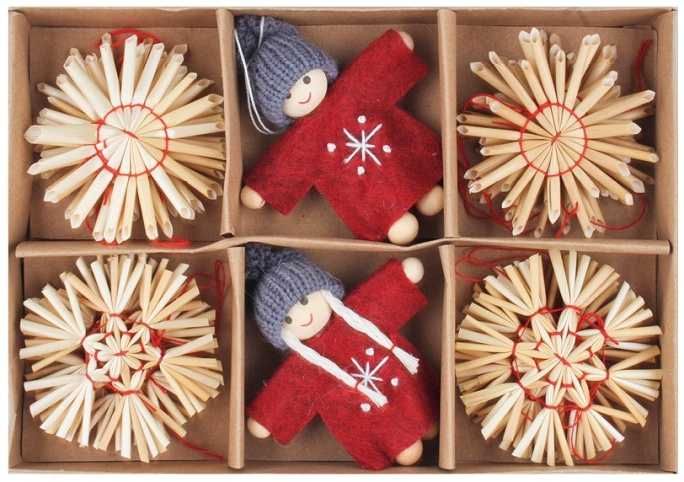 Slaměné ozdoby se skřítky na zavěšení 6 cm, 18 ks