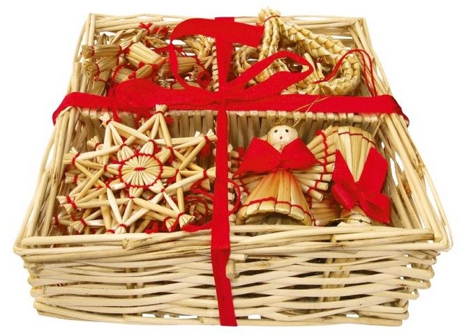 Slaměné ozdoby v krabičce 24 ks