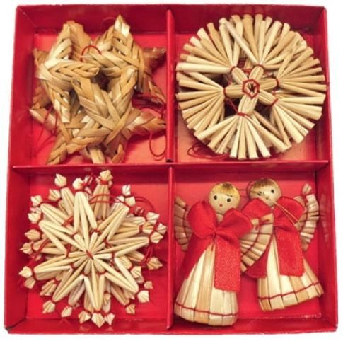 Slaměné ozdoby v krabičce 17 ks
