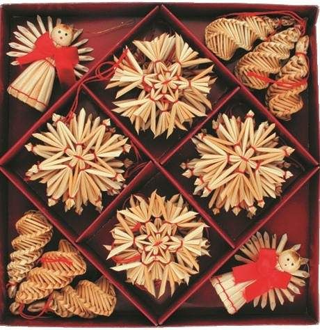 Slaměné ozdoby v krabičce 28 ks