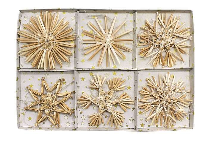 Slaměné ozdoby v krabičce cca 7,5cm 12ks
