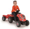 Šlapací traktor s volantem a přívěsným vozíkem, který lze odpojit. Odklápěcí kryt motoru. Nastavitelné sedadlo dle výšky dítěte. Klakson na volantu. Vyrobeno z velmi kvalitního plastu. Rozměry vč. vozíku: 142 x 54,5 x 44 cm. Délka traktoru bez vozíku cca 80 cm. Hmotnost 6,3 kg.