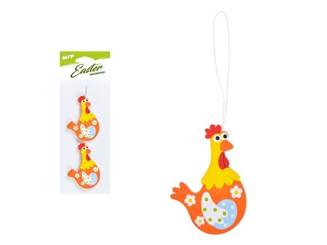 Velikonoční dekorace dřevěná - závěs s motivem slepice 2 ks - Vyzdobte si byt velikonočními dekoracemi a přivítejte tak svátky jara. Tuto dekoraci můžete použít na dekorování velikonočních věnců nebo větviček. BALENÍ OBSAHUJE: - 2 ks dekorací (slepice) Barva: červená Velikost: 6,5 cm Dekorace má provázek na zavěšení. Uvedená cena je za 1 balení.