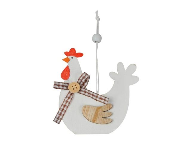 Krásná velikonoční dekorace v designu dřevěné bílé slepičky se závěsem, poslouží jako dekorace do exteriéru nebo na zkrášlení interiéru. Velikost: 9 cm Dekorace má provázek na zavěšení. Uvedená cena je za 1 ks.