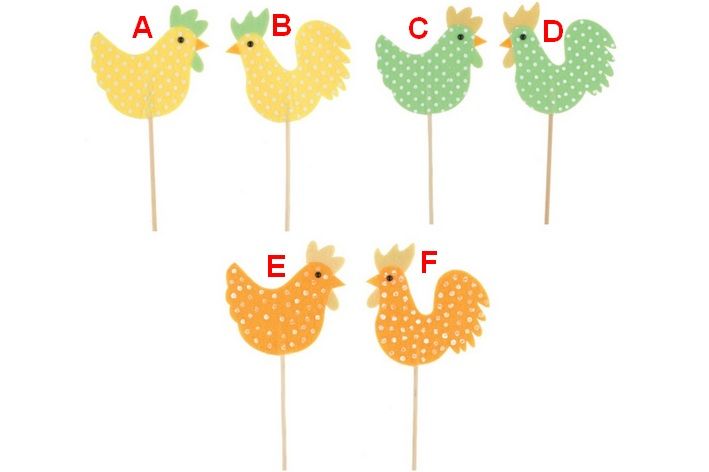 Slepička,kohoutek z filcu s puntíky zápich + špejle 6 druhů