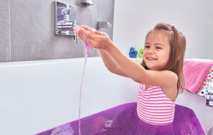 Prášek Glibbi přemění vodu do fialového třpytivého slizu a zábavné koupání může začít, poté stačí jen doplnit vodu a vytáhnout špunt. V balení 150 g prášku Glibbi.