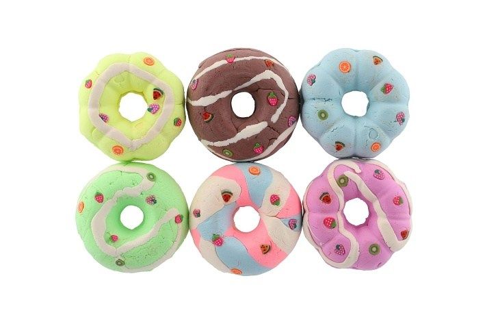 Mačkací hmota ve tvaru donutu. Mačkej, tvaruj, hraj si s ní.