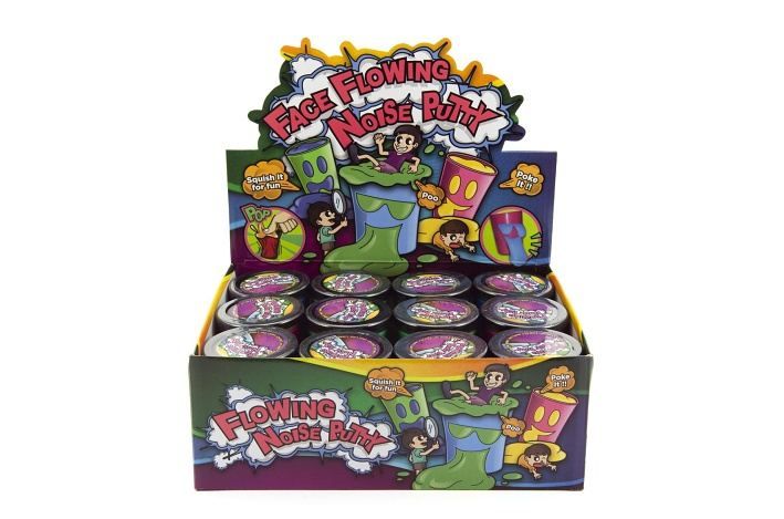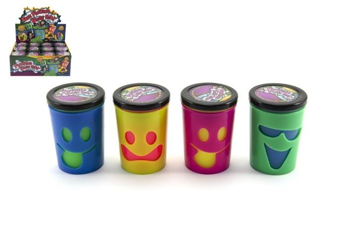 Sliz - hmota 80g s obličejem tekoucí prdící 7,5x5,5cm asst 4 barvy 12ks v boxu