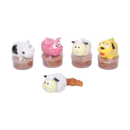Mačkací figurka zvířátko, kakající sliz, 18 g, 12 ks display box, 4 varianty - ovečka, prasátko, kravička, pejsek - Druhy/barvy: kráva,prase,ovce,pes