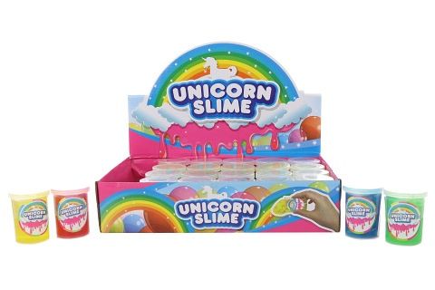 Barevná slizová hmota s plastovým jednorožcem uvnitř. Rozměr lahvičky cca 5 x 6 cm. Rozměr celého balení cca 30 x 7 x 19 cm. Věk 3+