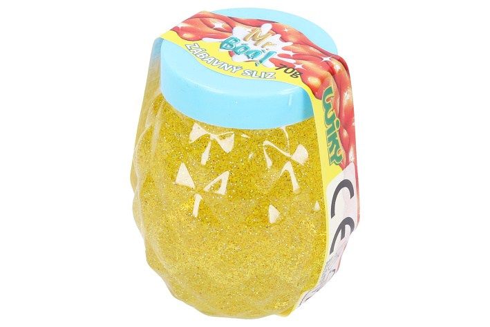 Sliz tvarovací ananas glitter 70g. Display box 28ks. 10 variant - červená, modrá, zelená, žlutá, růžová, bílá, černá, fialová, oranžová, zlatá.