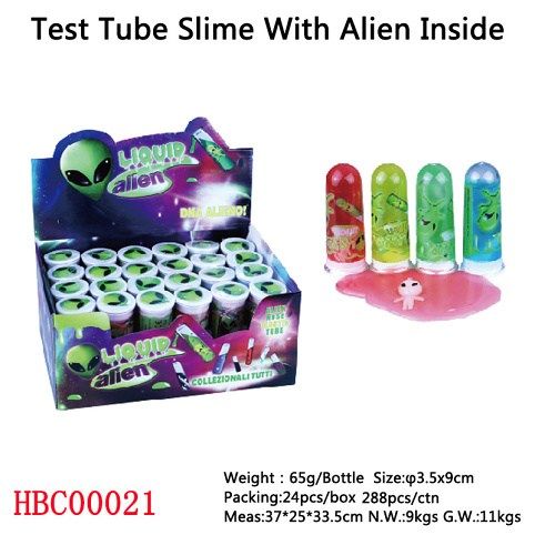 Sliz ve zkumavce-s figurkou-65g.Můžete si hrát jak se slizem taks figurkou uvnitř zkumavky. Sliz můžete orzdělit na několik částí aopět je spojit dohromady.Při hře rozvíjíte svou fantazii.Sliz je netoxickýa neškodí pokožce.Při zašpinění oblečení jde vyprat vevodě.Věk 3+