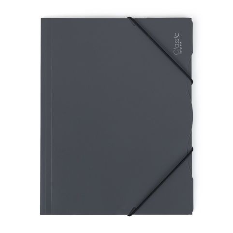Desky se třemi chlopněmi. Uzavírání pomocí gumičky. Materiál polypropylen, síla 600 mic. Roztažitelný hřbet až 3,0 cm. Kapacita 250 listů. Pro formát A4. Barvy s vysokým leskem