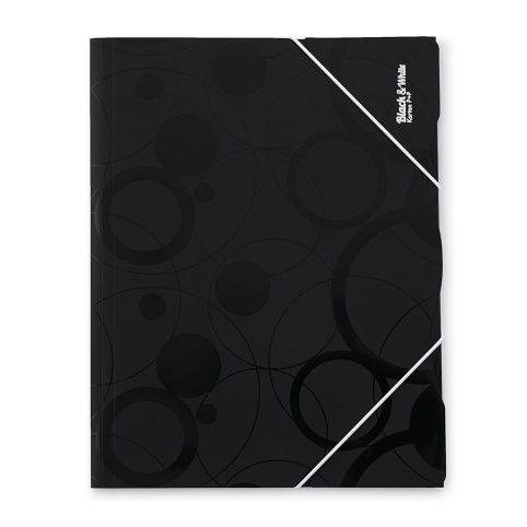 Desky se třemi chlopněmi. Uzavírání pomocí gumičky. Materiál polypropylen, síla 400 mic. Roztažitelný hřbet až 3,0 cm. Kapacita 250 listů. Pro formát A4