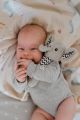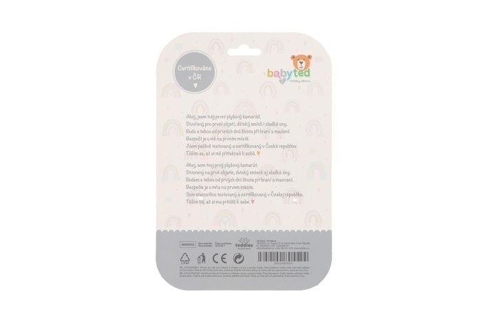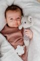 Na konci držátka je umístěno měkké plastové kousátko ve tvaru kytičky, které pomáhá ulevit citlivým dásním při prořezávání zoubků. Kontrastní vzory na tělíčku a ouškách podporují vizuální vnímání dítěte.