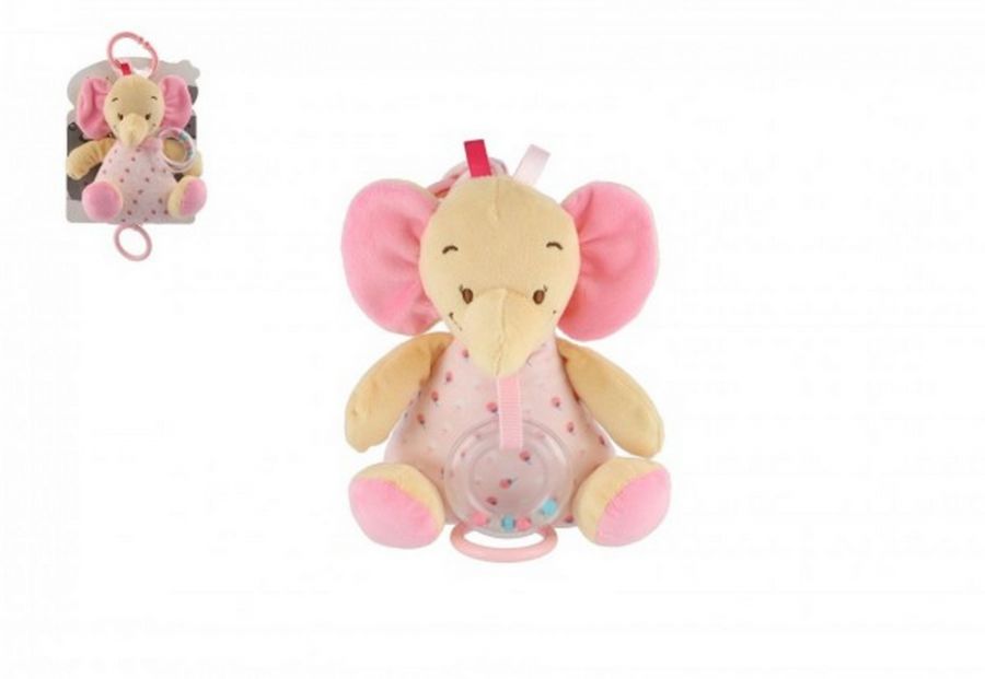 Natahovací plyšový slon hraje příjemnou melodii, která miminko uklidní a pomáhá mu při usínání. Hračku lze zavěsit za pomocí klipu na postýlku nebo kočárek. Hrací strojek je zabudovaný uvnitř zvířátka a plastové kolečko slouží jako natahovací klip. Rozměry balení 17 x 21,5 x 8 cm. Vhodné pro děti od narození.