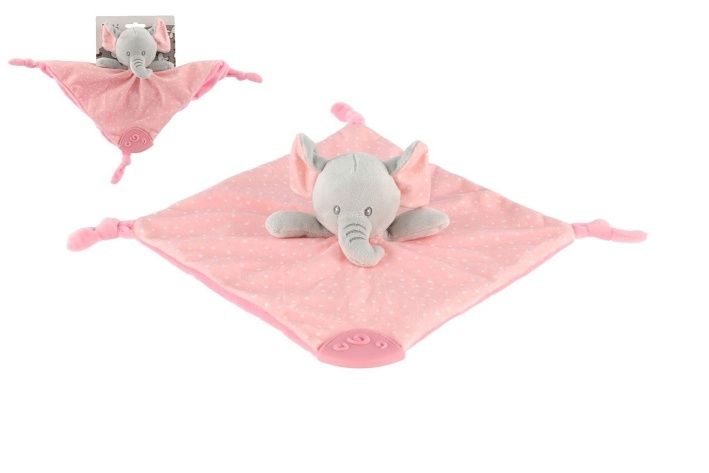 Slon usínáček kousátko plyš 25x25cm růžový na kartě v sáčku 0+