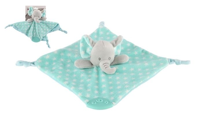 Slon usínáček kousátko plyš 25x25cm zelený na kartě v sáčku 0+