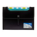Černá složka A4 s 12 kapsami / přehrádkami se zapínáním na gumu a knoflík.