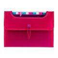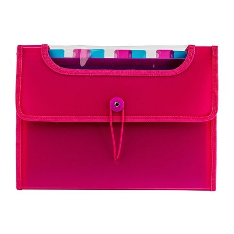 Růžová složka A4 s 12 kapsami / přehrádkami se zapínáním na gumu a knoflík.