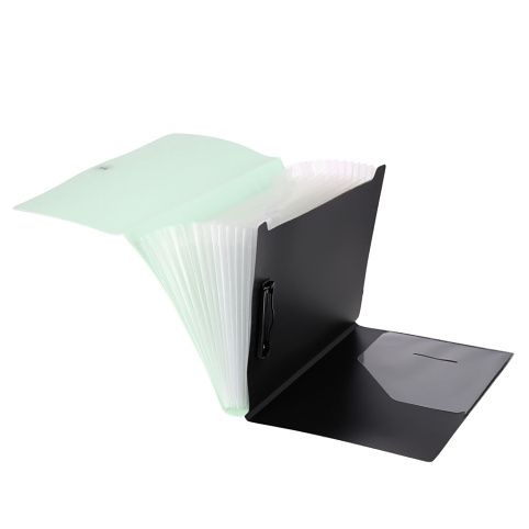 Tento praktický a odolný organizér je vyroben z kvalitního polypropylenu, který je na vnější straně zvlněný pro lepší úchop a ochranu proti poškození. Uvnitř najdete 13 oddílů pro snadnou organizaci dokumentů, a kovovou sponu pro pevné uchycení papírů. Elastický gumový pásek s knoflíkovým zapínáním zajišťuje, že všechny dokumenty zůstanou bezpečně na svém místě. Ideální pro každodenní použití v kanceláři, škole nebo na cestách.