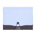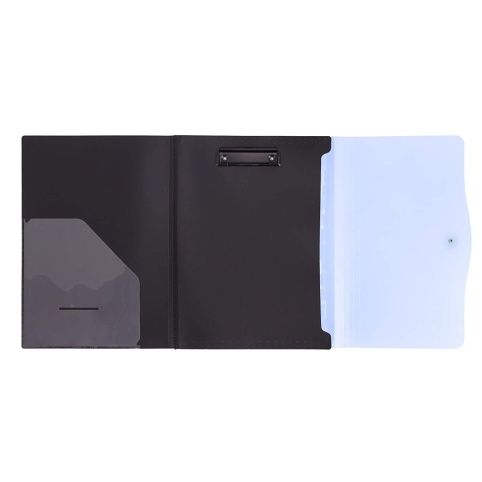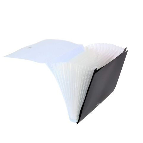 Tento praktický a odolný organizér je vyroben z kvalitního polypropylenu, který je na vnější straně zvlněný pro lepší úchop a ochranu proti poškození. Uvnitř najdete 13 oddílů pro snadnou organizaci dokumentů, a kovovou sponu pro pevné uchycení papírů. Elastický gumový pásek s knoflíkovým zapínáním zajišťuje, že všechny dokumenty zůstanou bezpečně na svém místě. Ideální pro každodenní použití v kanceláři, škole nebo na cestách.