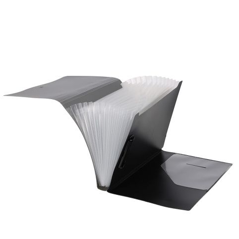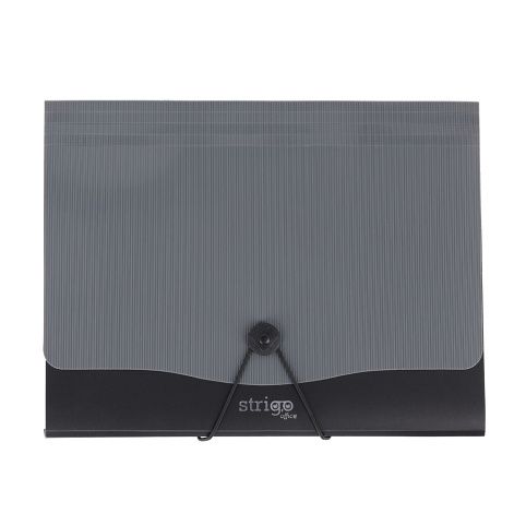Tento praktický a odolný organizér je vyroben z kvalitního polypropylenu, který je na vnější straně zvlněný pro lepší úchop a ochranu proti poškození. Uvnitř najdete 13 oddílů pro snadnou organizaci dokumentů, a kovovou sponu pro pevné uchycení papírů. Elastický gumový pásek s knoflíkovým zapínáním zajišťuje, že všechny dokumenty zůstanou bezpečně na svém místě. Ideální pro každodenní použití v kanceláři, škole nebo na cestách.