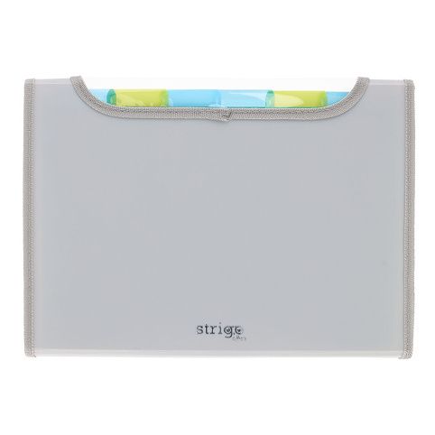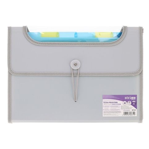 Fialová složka A4 s 6 kapsami / přehrádkami se zapínáním na gumu a knoflík.
