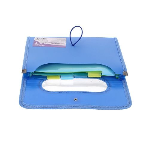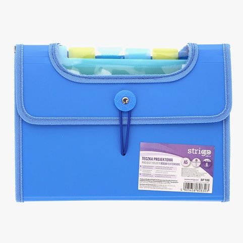Černá složka A5 s 6 kapsami / přehrádkami se zapínáním na gumu a knoflík.