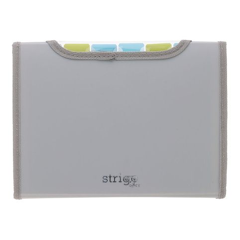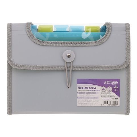 Černá složka A5 s 6 kapsami / přehrádkami se zapínáním na gumu a knoflík.
