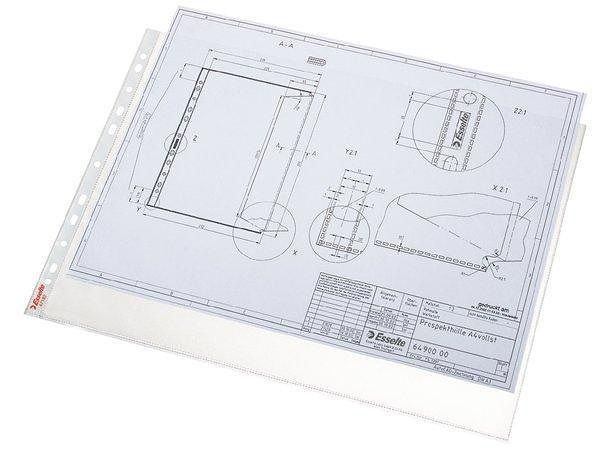 Kvalitní plastové závěsné kapsy pro časté a reprezentativní použití velkoformátových dokumentů A3 v pákových a kroužkových pořadačích.