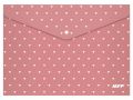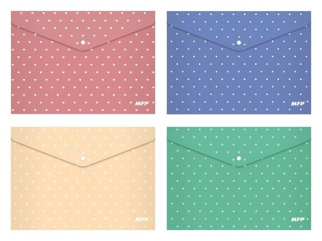 Složka z PolyPropylenu (PP), která se zavírá pomocí druku - velikost A4. Složka slouží jako pomocník pro třídění a ukládání dokumentů, takže je budete mít vždy pohromadě. MATERIÁL: PP SÍLA MATERIÁLU: 0,21 mm BARVA: béžová, zelená, modrá, starorůžová POTISK: srdce, puntíky, trojúhelníky, pluska Uvedená cena je za 1 ks.