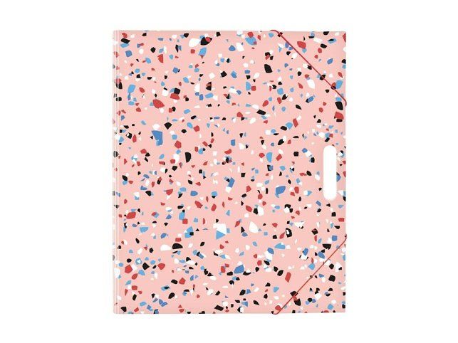 Složka na výkresy v růžové barvě s motivem imitující broušenou dlažbu s jemnými kamínky (terrazzo). Je vyrobená z kvalitního lepenkového kartonu, potaženého laminem. Uvnitř složky jsou růžky pro uchycení výkresů A4. Složka je opatřená gumičkou pro pevné uzavření a průhmatem pro snadné přenášení. Výkresy tak zůstanou neporušeny. Formát: A4 Barva: růžová Motiv: terrazzo Materiál: lepenkový karton s laminem Uvedená cena je za 1 ks.