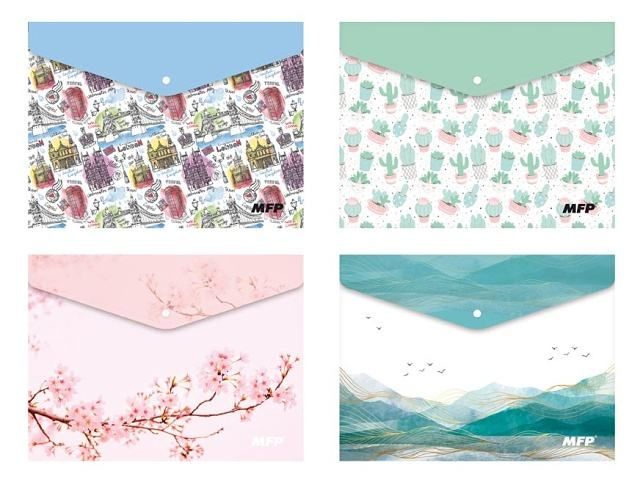 Složka z PolyPropylenu (PP), která se zavírá pomocí druku - velikost A5. Složka slouží jako pomocník pro třídění a ukládání dokumentů, takže je budete mít vždy pohromadě. MATERIÁL: PP SÍLA MATERIÁLU: 0,21 mm POTISK: Londýn, kaktusy, květy, vlny Uvedená cena je za 1 ks.
