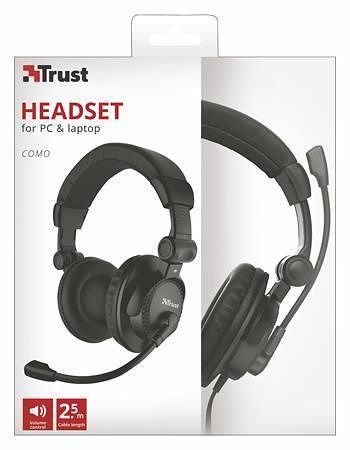 Sluchátka "Como", černá, s mikrofonem, drátová, 3,5 mm, TRUST