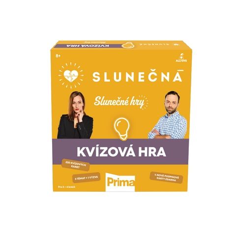 Jak dobře znáte seriál Slunečná? Máte přehled v tématech ze zemědělství? A co teprve pořady FTV Prima? Roztočte ruletu a odpovězte na otázku, kterou vám určí střelka! Za každou správnou odpověď postupujete vpřed. Kdo bude první v cíli, vyhrává! Kvízová hra nabízí 5 různých okruhů otázek a speciální kategorii „Výzva“. Hra pro 2 – 6 hráčů. Hra obsahuje: 6 figurek v podobě herců ze seriálu, hrací plán s ruletou, 220 kvízových karet a návod. Věk: 8 +.