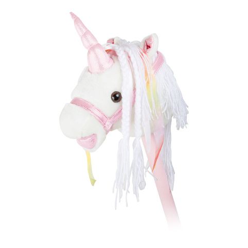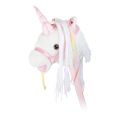 Jízda plná fantazie a kouzel může začít! Roztomilý jednorožec je vyroben z měkoučké plyše, jeho hřívu zdobí pestré duhové prameny a roh je vyzdoben zářivými flitry. Po stisknutí levého ucha se ozve zvuk trysku a stisknutím pravého ouška koník zařehtá. Hlavní vlastnosti: měkké plyšové provedení různé zvukové efekty (baterie jsou součástí balení) Rozměr: 90x12x26 cm Věk: 3+ Materiál: dřevo, plyš Baterie jsou součástí balení