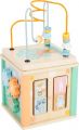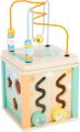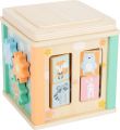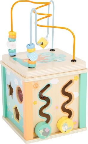 Skládejte, strkejte, klapejte, otáčejte! Můžete si hrát ze všech pěti stran! Dřevěná motoriká kostka nabídne zábavu i nejmenším dětem. Perličkové bludiště, otáčející se obrázky, otvory s kostkami pro vkládání, ozubená kolečka – všechny tyto prvky děti naučí rozevnávat barvy a tvary a také procvičí jejich jemnou motoriku. Trendy pastelové barvy, roztomilé zvířecí motivy, hravé detaily, tato kostka bude pravým poutačem v každém dětském pokojíku. Vrchní víko můžete sundat a uložit do kostky vzhůru nohama, ušetří vám tak kousek místa. Krásná motorická kostka je součástí produktové řady „Pastel“ a zaujme vysokým viditelným podílem dřeva a moderním zabarvením v pastelových barvách.