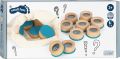 Poslechové pexeso "Sensory" je hra, která oslovuje smysly a podporuje rozvoj dětských dovedností. S touto akustickou senzorickou hrou z produktové řady "Sensory" je cílem rozpoznat, pojmenovat a spárovat správné dvojce na základě pečlivého naslouchání tomu, jak znějí. 16 ks dřevěných nádobek je naplněno materiály, jako jsou dřevěné kuličky, kovové kuličky, plastové korálky, které při zatřesení vydávají různé zvuky. Průhledy z plexiskla umožňují kontrolu jejich obsahu. Hru lze hrát samostatně nebo ve více hráčích a je vhodná zejména pro děti a osoby se zrakovým postižením. Ergonomicky tvarované dřevěné herní prvky díky své velikosti a vyčnívajícímu víku boxu snadno uchopí děti i starší lidé. Po dokončení hry se všechny herní prvky dají uložit do textilního sáčku. Tato smyslová hra nejen podporuje rozvoj vlastního sluchu a paměti, ale také slibuje spoustu rozmanité herní zábavy díky různým variantám hry. Lze ji hrát také jako hru vizuální paměti, protože různé materiály uvnitř mají také různý vzhled a barvu. Je to všestranná společenská hra orientovaná na paměť, která trénuje sluch a zároveň je hodně zábavná! Hlavní vlastnosti: vhodná hra děti a osoby se zrakovým postižením, podporuje rozvoj sluchu a paměti, vizuální podněty, bavlněný sáček pro uložení