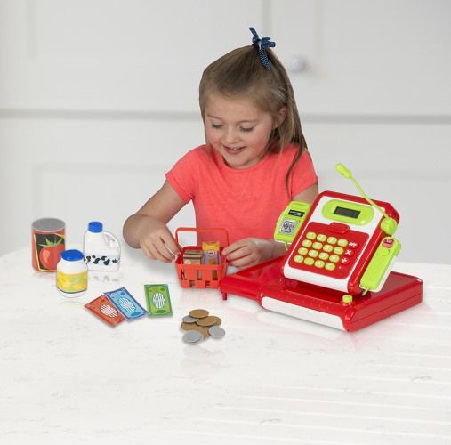 dětské peníze, platební kartu, košíček. Na baterie: 2x AA (jsou součástí balení)