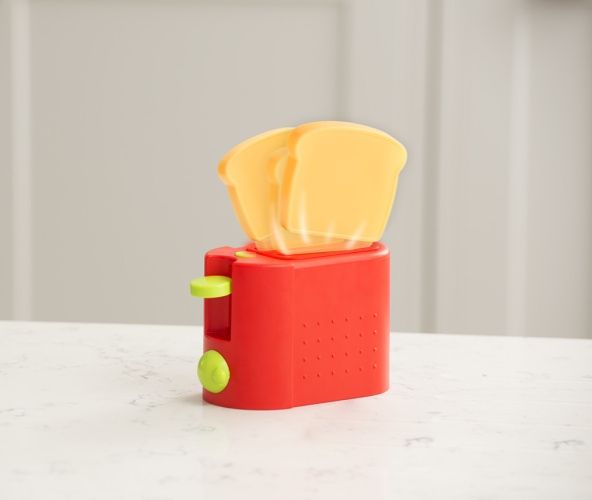 Plastový Toaster pro malou hospodyňku obsahující dva toasty.