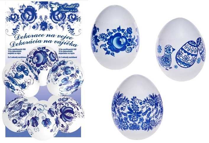 Smršťovací dekorace na vejce modré10ks+10stojánků