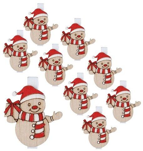 Sněhuláci na kolíčku 4 cm, 9 ks červení