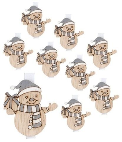Sněhuláci na kolíčku 4 cm, 9 ks šedí (30059)