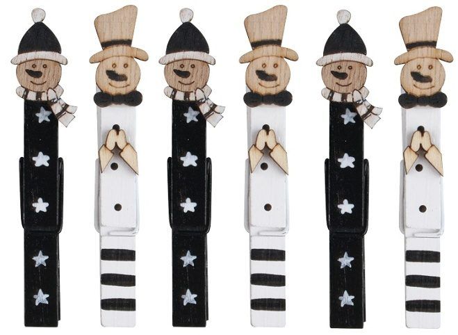 Sněhuláci na kolíčku 8,5 cm, 6 ks černí