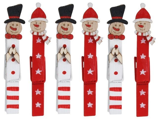 Sněhuláci na kolíčku 8,5 cm, 6 ks červení