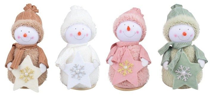 Sněhulák na postavení s pletenou čepicí 18 cm
