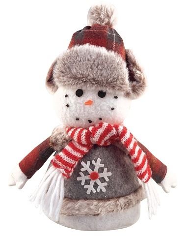 Sněhulák v ušance na postavení, 18 x 26 x 10 cm Tento roztomilý sněhulák v huňaté ušance je veselou zimní dekorací, která přinese do vašeho domova radost, pohodu a sváteční náladu. Jeho přátelský výraz a měkké detaily z něj dělají ideální doplněk do zimně laděného interiéru. Využití: Skvěle se hodí na postavení na komodu, parapet, polici nebo jako součást vánočního a zimního aranžmá. Díky stabilní základně dobře drží i na měkčím povrchu. Vlastnosti: rozměry: 18 x 26 x 10 cmstabilní základna pro postavenívhodný pro zimní a vánoční dekoraceTento sněhulák vnese do vašeho domova úsměv a hřejivou zimní atmosféru.