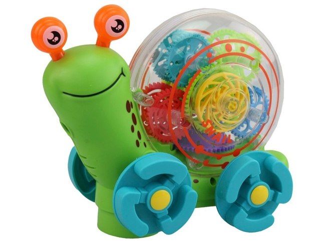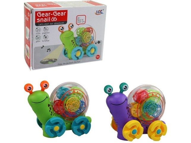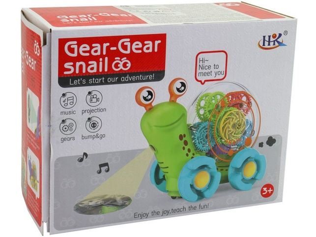 Šnek s ozubenými kolečky, na baterie, s hudbou a projektorem, 18 x 8,5 x 1,5 cm